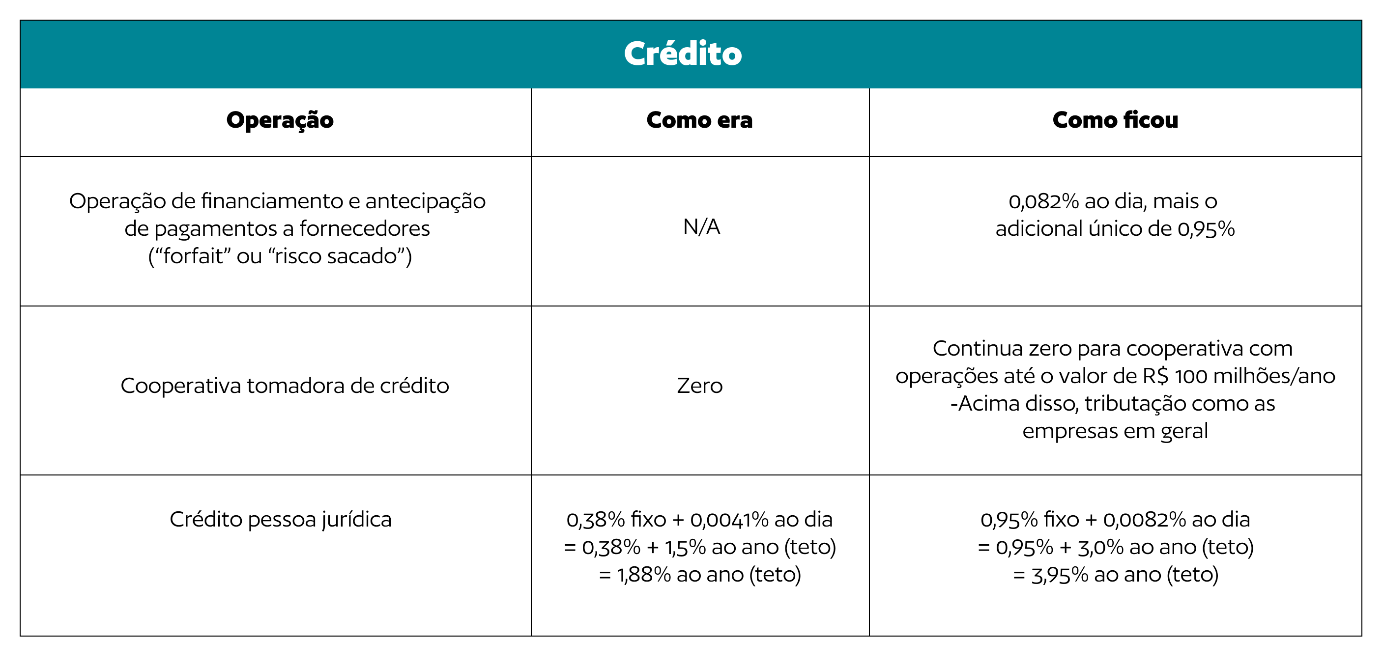 Além das mudanças nas operações de câmbio, o Decreto também promoveu alterações significativas no IOF incidente sobre operações de crédito, com impacto direto para pessoas jurídicas.
